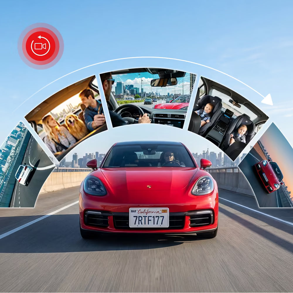 Most of our dash cams use loop recording to continuously overwrite old footage, ensuring your memory card never runs out of space. (Supports up to 512 GB TF cards and includes a free 128 GB TF card.)