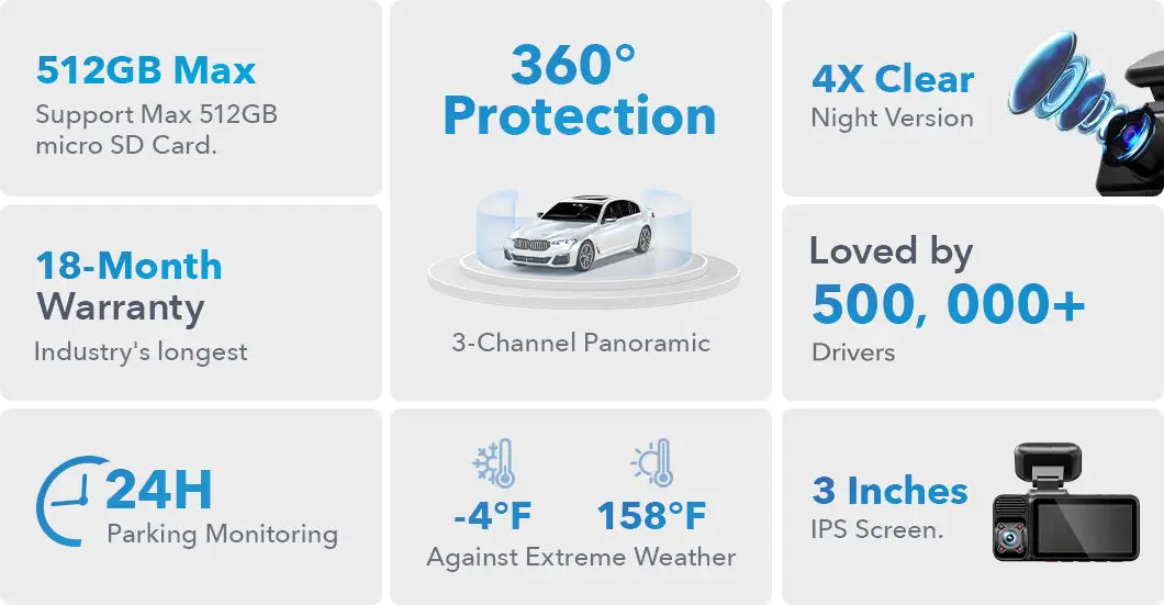 •Latest 3-channel dash cam with true 4K and fast 5 GHz Wi-Fi