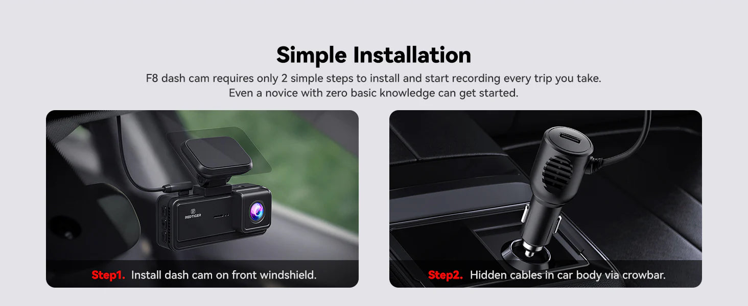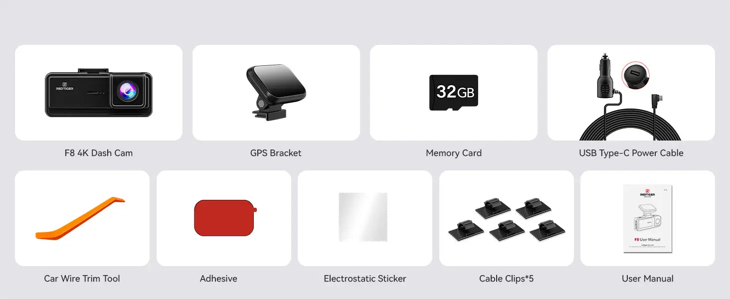 - [UltraHD 4K Front Dash Cam] F8 Car dash cam has a front car camera with F1.5 and 6-Glass, ensuring clear recording even in low-light conditions. The front-facing 160° dash camera can shoot 4K@30FPS video, enhance camera fill light, capturing license plates and road signs. It can additionally purchase rear cam to achieve front 4K@30FPS and rear 1080P@25FPS.