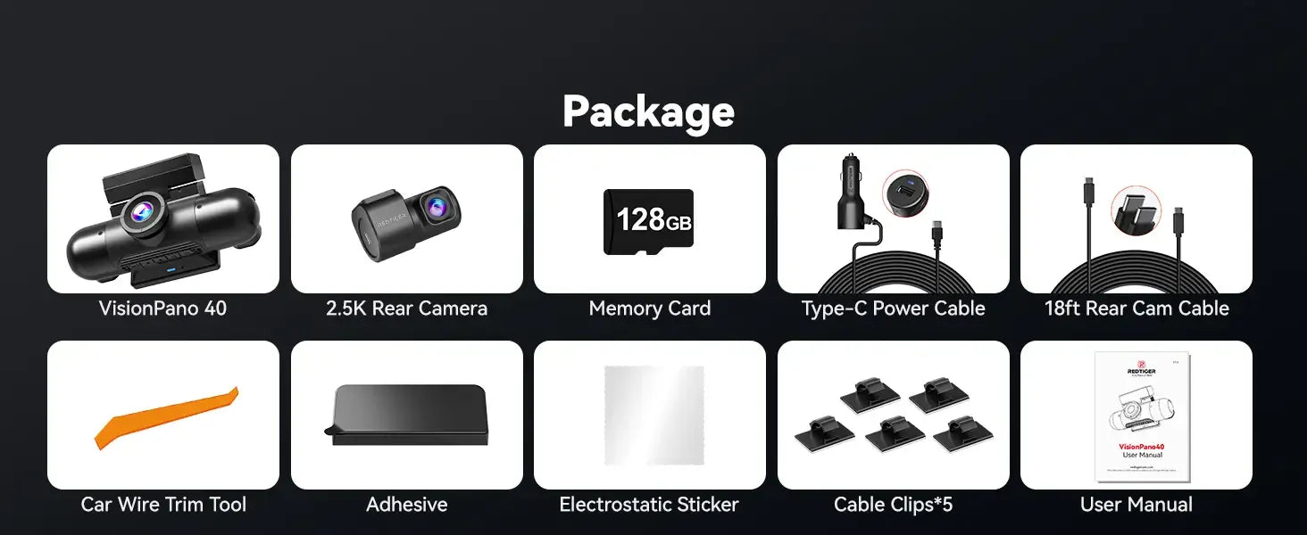 Includes a free 128GB memory card for the Redtiger VP40 4K dash cam. With seamless loop recording that automatically overwrites the oldest recordings to ensure continuous operation. Backed by an 18 month warranty and 24/7 technical support for total peace of mind. Whether for the daily commute to work or for commercial trips, this four-channel dash cam provides reliable storage, comprehensive protection and professional support