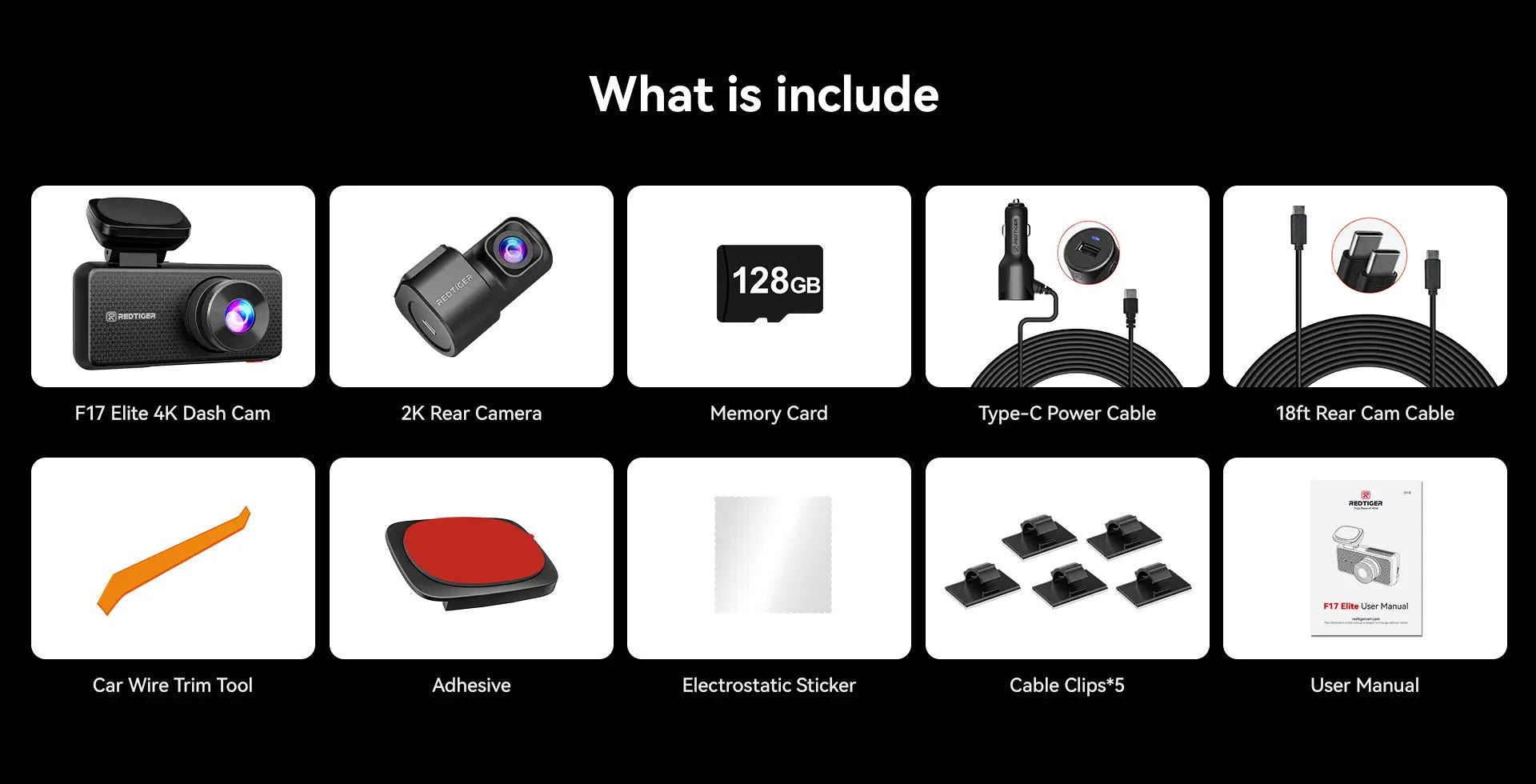Vous recevrez gratuitement une carte TF REDTIGER de qualité industrielle de 128 Go. Si vous pensez avoir besoin d'une carte mémoire plus grande, veuillez sélectionner la configuration supplémentaire sur la page F17 Elite, ou accéder et commander via le lien ci-dessous. Carte SD Redtiger 32 Go-256 Go. Le F17 Elite prend en charge les cartes mémoire jusqu'à 512 Go.