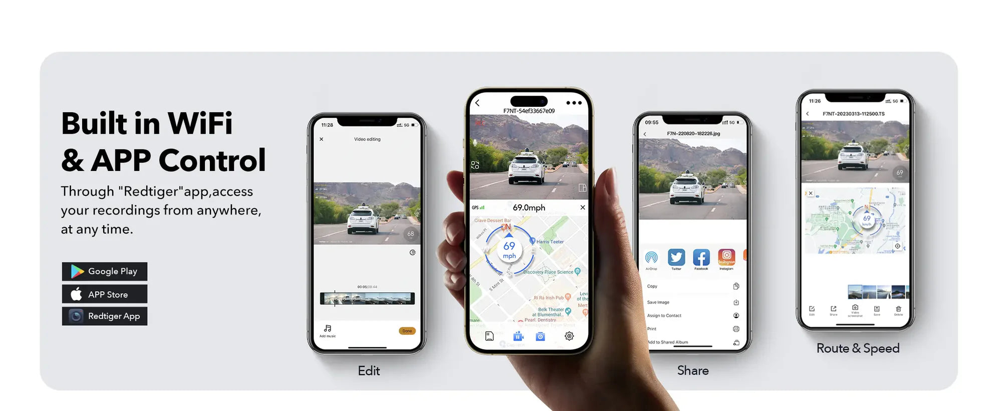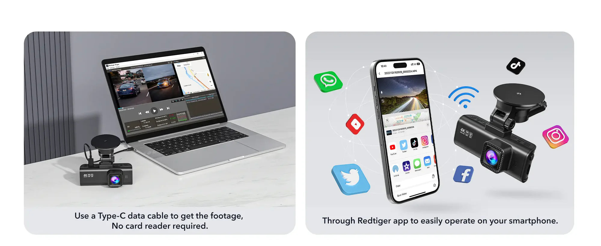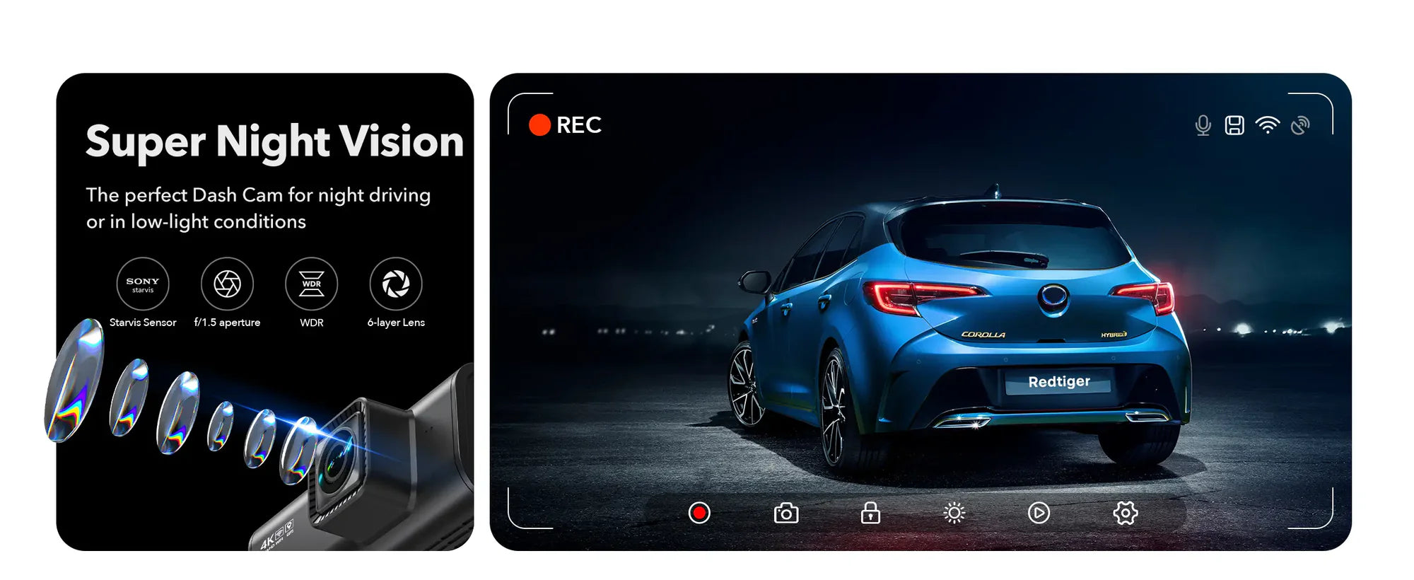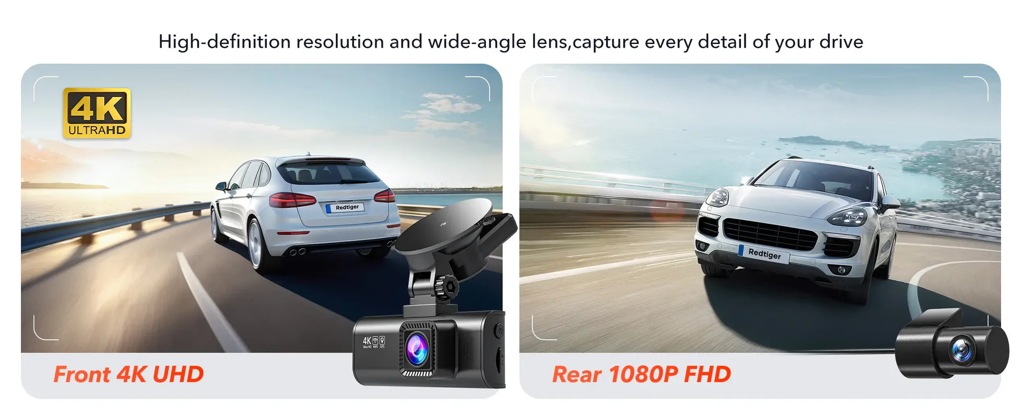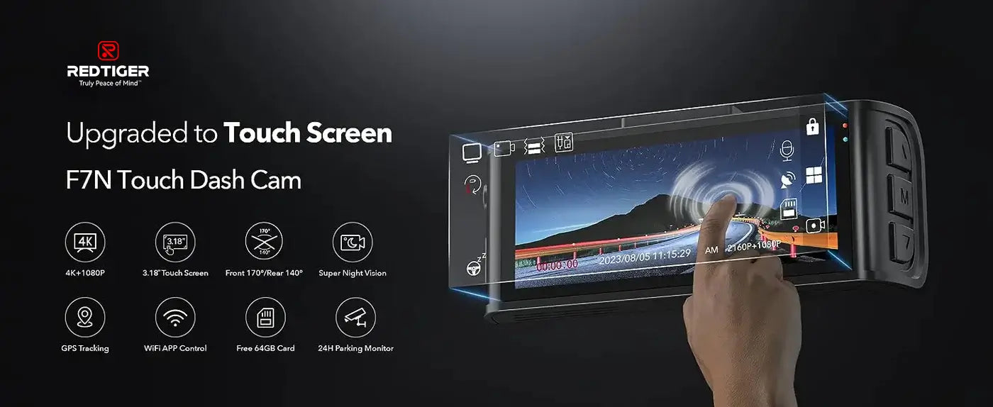 Redtiger F7NT Scáileán Tadhaill 4K Dual Dash Cam