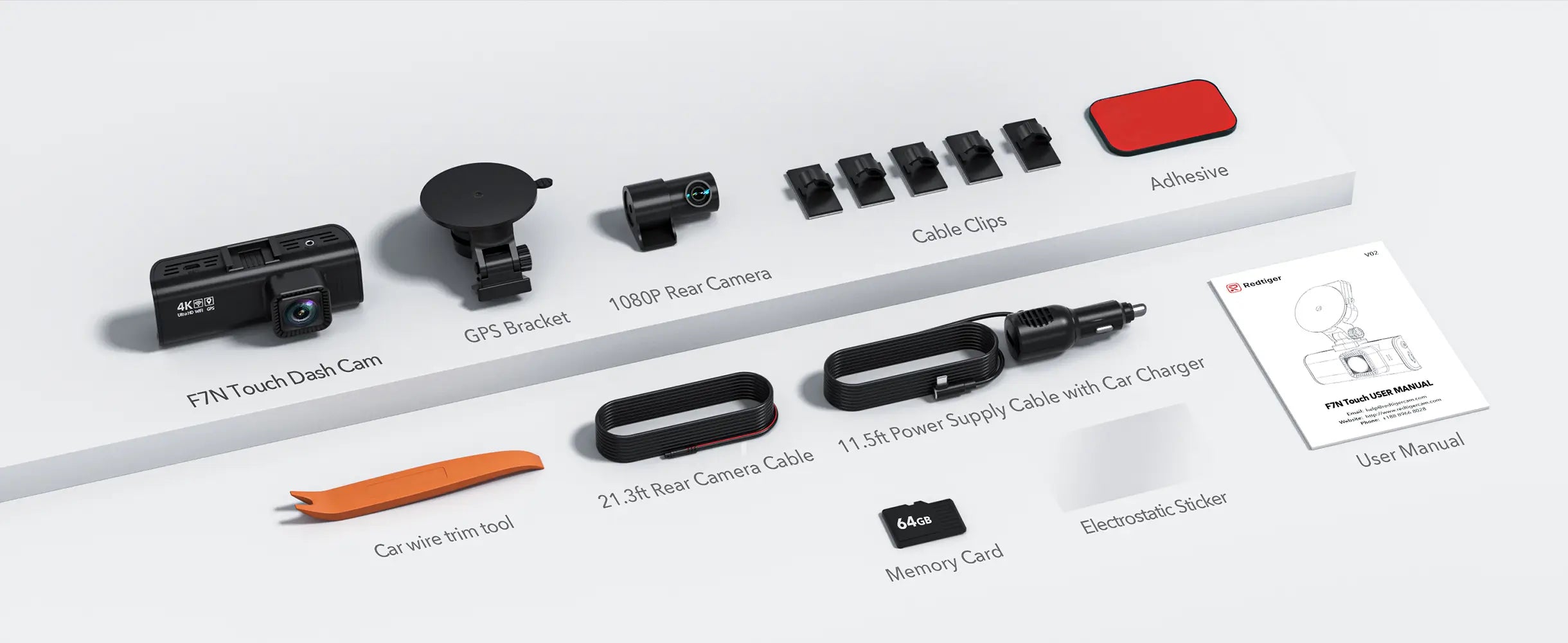 - F7NT Basic: 4K(Sony IMX675) Front + 1080P FHD Rear+64GB SD card