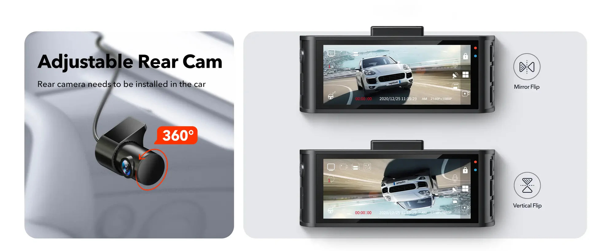 - F7NT Expanded:4K(Sony IMX675) Front + 1080P FHD Rear+128GB SD card