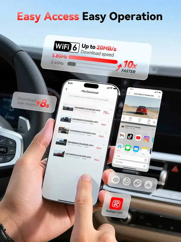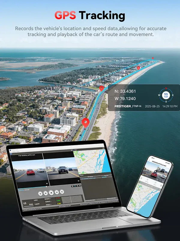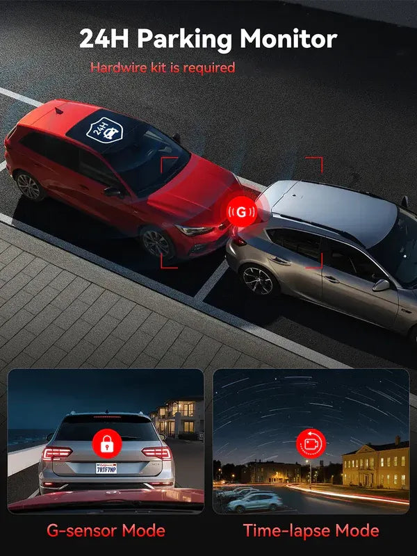 • Dispunând de unghi larg de 170°, monitorizare parcare 24/7, control WiFi și aplicații, GPS, Super Night Vision, înregistrare în buclă!