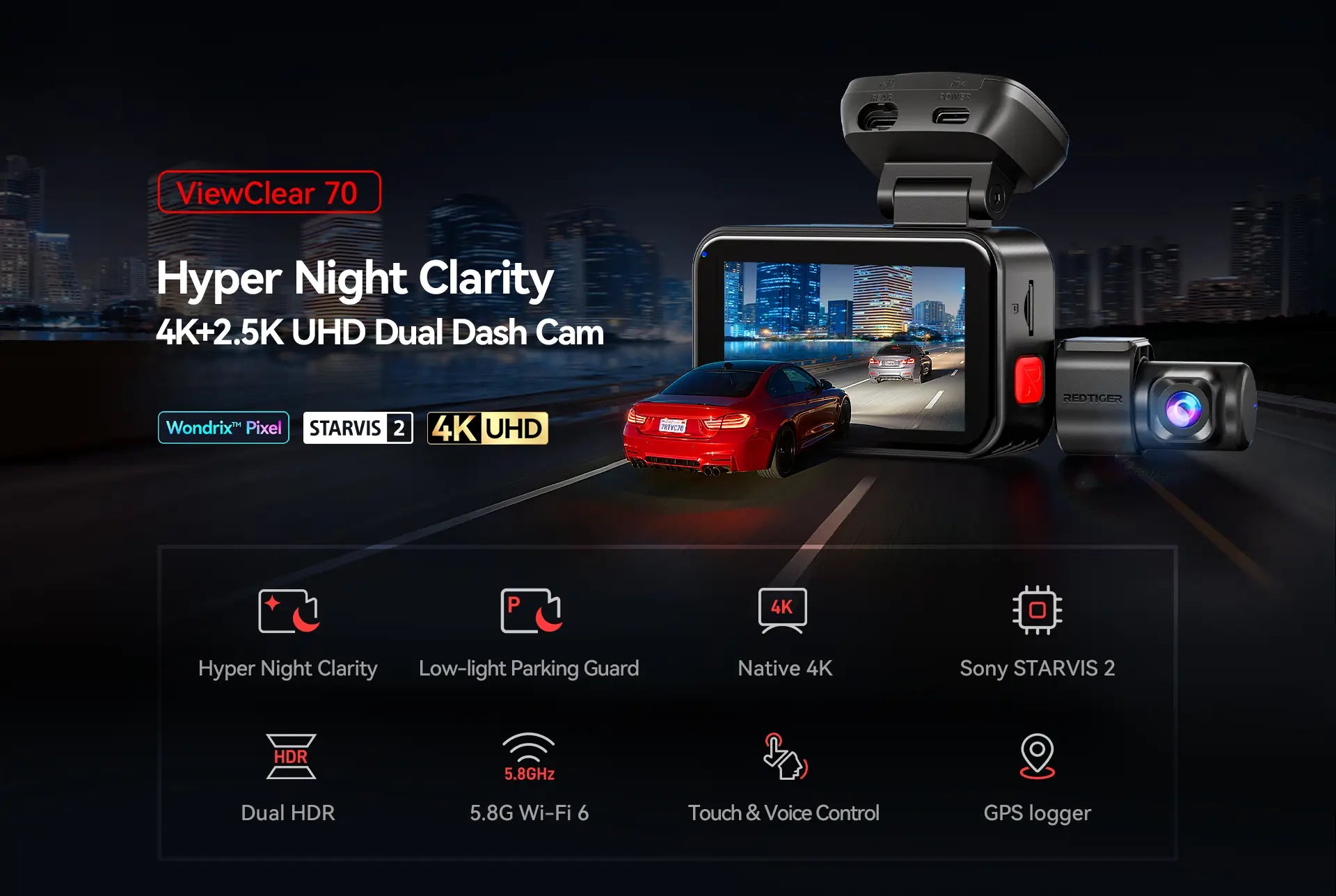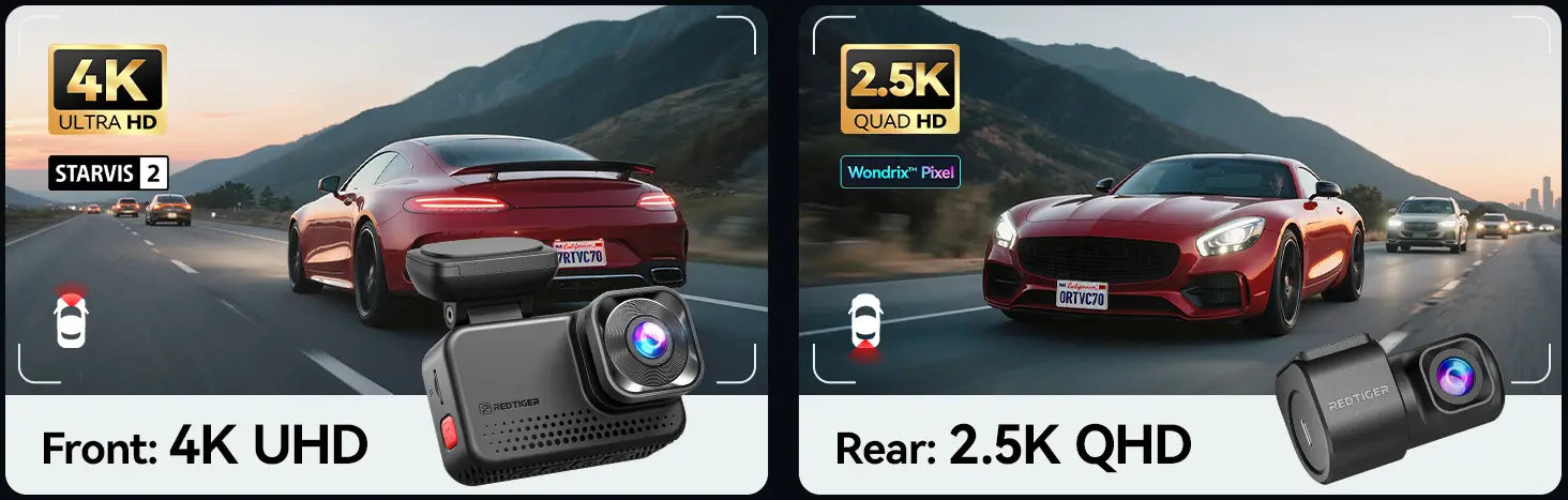Redtiger ViewClear 70 4K Dual HDR 5.8Ghz WiFi-6 Hyper Night Clarity Dual Dash Cam