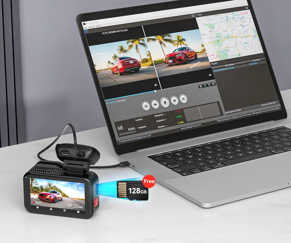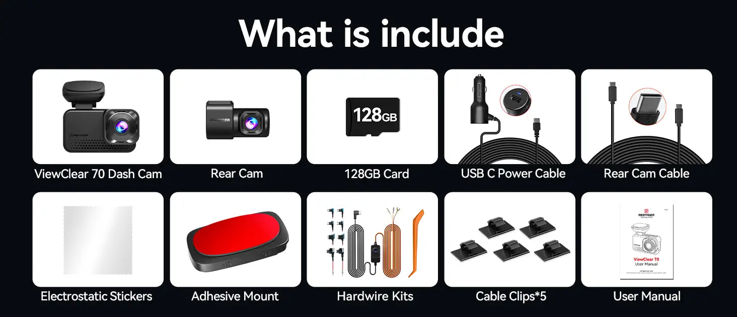 The VC70 comes with a free128GB high-endurance memory card designed for heavy usage and write-intensive applications.Unbox, Install, Go —Everything Included!